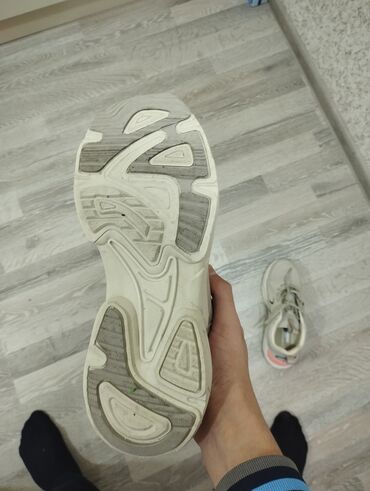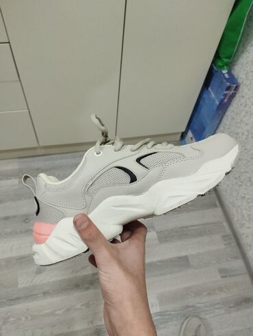 Boz rəngdə qara naxışlı və qırmızı-yaşıl zolaqlı uniseks idman ayaqqabıları. Ayaqqabı bağları boz rəngdədir və qızılı metal bəzəkləri var. Ağ və qara rəngli qalın dabanı gündəlik istifadə üçün raha...