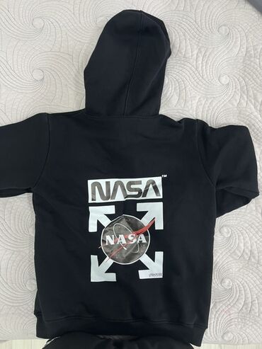 Qara rəngli kapüşonlu svitşot – NASA temalı dizayn