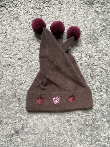 - Fleece papaq, tünd qəhvəyi rəng, üst hissədə 3 ədəd bordo pompon, alt hissədə pişik pəncəsi naxışları (bordo-çəhrayı tonlarda).