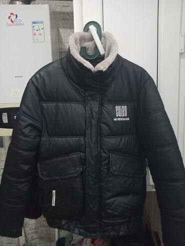 Kişi üçün isti qış gödəkçəsi - Material: qara rəngli dəri görünümlü üst (eko-dəri), iç hissə tam yun/şerpa tipli tüklü astarlı, bej rəngdə. - Yaxa: qalın, yumşaq süni kürk yaxa – boynu yaxşı qoruy...