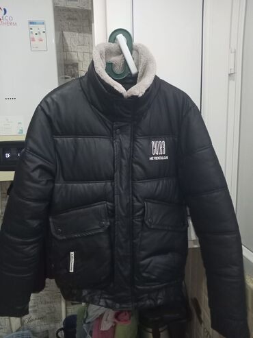 Qara kişi qış gödəkçəsi – ölçü XL.Rusiyadan alınıb.çox isti saxlayır - Material: Parlaq qara üst səth (dəri effektli), iç hissə yumşaq xəz/plyuş astarlı - İsti, həcmli “puffy” dizayn, üfüqi tikiş...