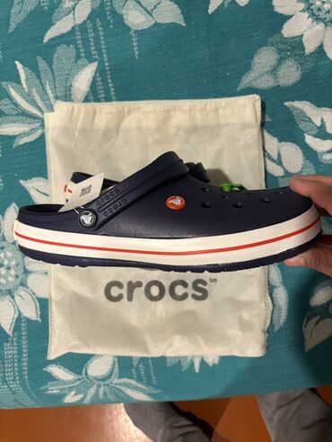 Məhsul: Crocs Classic Clog (orijinal dizayn) - Rəng: Tünd boz üstlük, yanlarda ağ-yaşıl zolaq və iri “crocs” loqotipi - Material: Yüngül və elastik köpük (Croslite tipli) - Dizayn: Havalandırma üç...