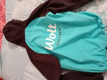 Wolt Partner yağmurluq-kurtka - Brend loqosu: Wolt Partner (ön və arxa hissədə çap). - Rəng: firuzəyi-turkuaz gövdə, qara qol və başlıq. - Material: suya və küləyə davamlı xarici qat, iç tərəfdə q...