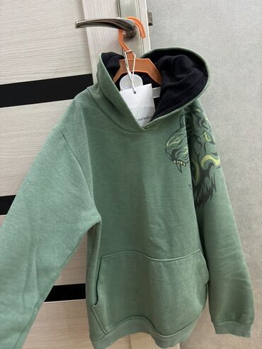 CAKAZZAN brendindən yaşıl hudi. Qara astarlı kapüşon. Ön tərəfdə böyük cib. Sol qolda heyvan başı dizaynı. Rahat kəsim.