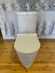 Bej rəngli unitaz dəsti, müasir dizaynlı və quraşdırılması asan. Su çəni unitazın arxa hissəsində yerləşir, bu da hamam otağında yerə qənaət etməyə imkan verir. Dəstə yavaş bağlanan oturacaq daxild...