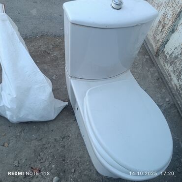 Şəkillərdə olan bütün komponentlər birlikdə təqdim olunur: unitaz (çən, qapaq) və lavabosu (kran və drenaj dəliyi).