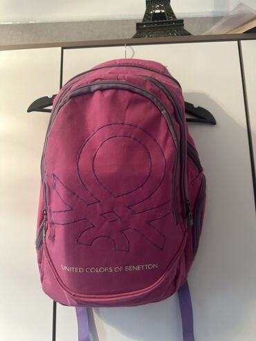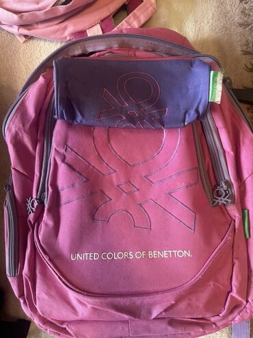 Benetton brendi məktəb/gündəlik bel çantası.Kicik,elle tikile bilinecek sokuyu var,amma cox az istifade olunub. Sokuye gore qiymet ashagidir - Rəng: çəhrayı və tünd çəhrayı iki tonlu dizayn - Mate...