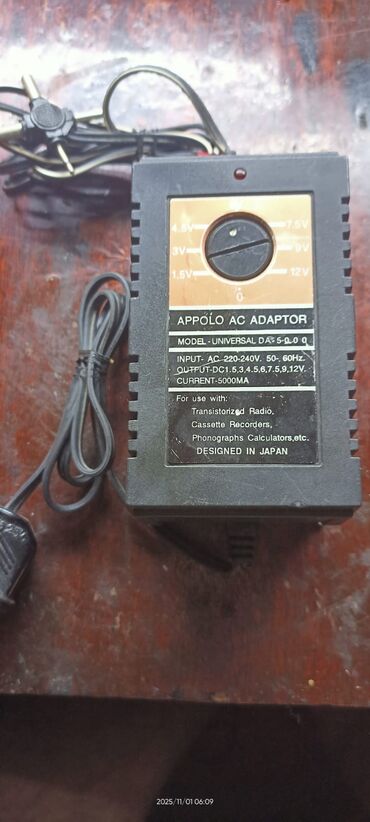 - Çıxış gərginliyi: DC 1.5V, 3V, 4.5V, 6V, 7.5V, 9V, 12V (seçim düyməsi ilə)
