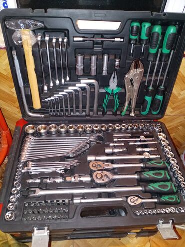 Avtomobil, motosiklet, məişət təmiri və ustaxana işləri üçün çoxfunksiyalı komplekt. Alətlər ergonomik tutacaqlıdır, çoxsaylı ölçü və ucluqlar sayəsində həm incə, həm də ağır işlərə uyğundur.