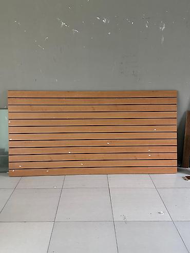 - Material: dekorativ taxta görünüşlü panel (MDF/laminat tipli), üfüqi “slat” kanallı quruluş