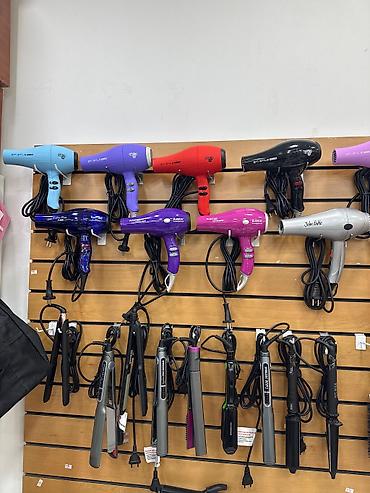 - İstifadə nümunəsi: şəkillərdə fen, saç ütüsü və bukle maşınlarının asılması göstərilir – kabellə birlikdə səliqəli nümayiş və tez çıxarılıb-taxma imkanı