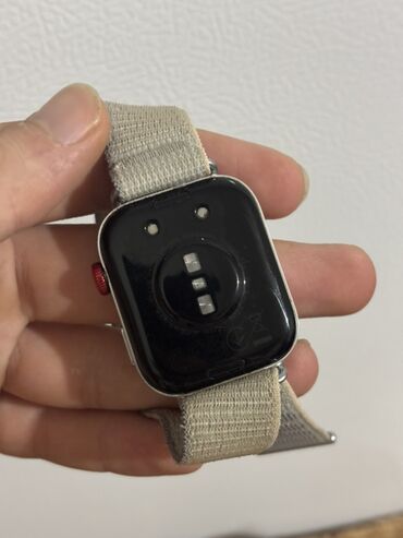 Ağıllı saat – kvadrat ekranlı, metal korpuslu, sağ tərəfdə qırmızı rəngli fırlanan tac və funksional düymə. Arxa hissədə ürək döyüntüsü və digər sağlamlıq göstəricilərini izləmək üçün optik sensorlar mövcuddur.