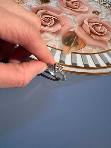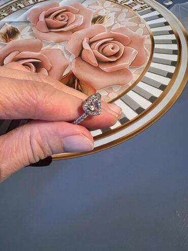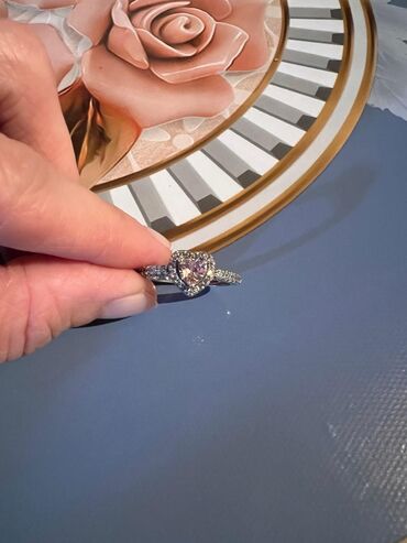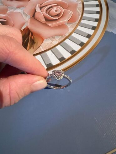- Üzük başlığında ürək formasında açıq çəhrayı daş (mərkəz daş)