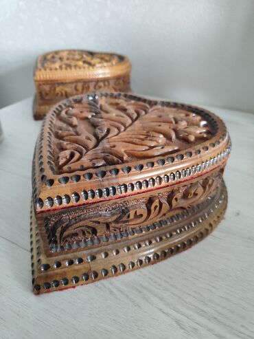 Bu, taxtadan hazırlanmış, oyma bəzəkli zərgərlik qutusudur. Əl işi ile hazirlanib real alicilara endirim var