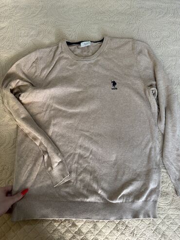 U.S. Polo Assn. kişi sviteri - Model: BASICS seriyası - Yaxa: V-yaxa - Rəng: Açıq menta/solğun yaşıl - Material: Nazik, yumşaq trikotaj (etiketdə “BASICS” xətti) - Dizayn xüsusiyyətləri: - Sinəd...