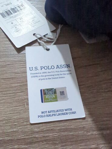 - Brend etiketləri: US Polo Assn. rəsmi məhsul nişanı və məlumat kartı, QR/holoqram stikeri