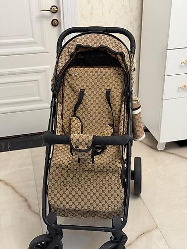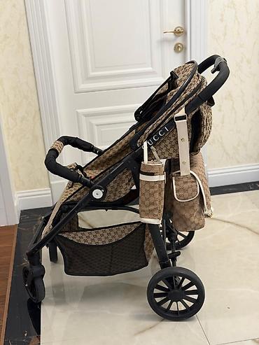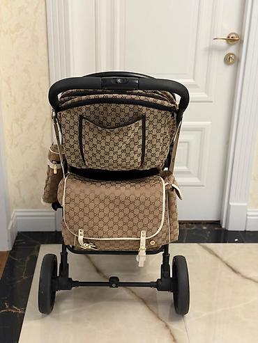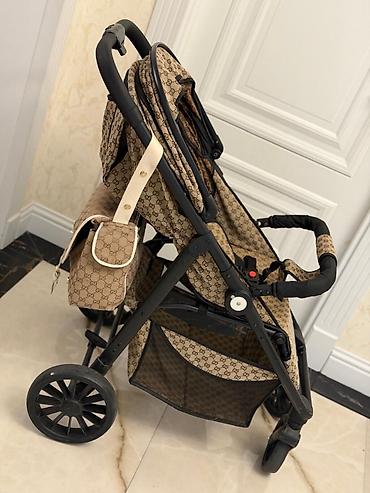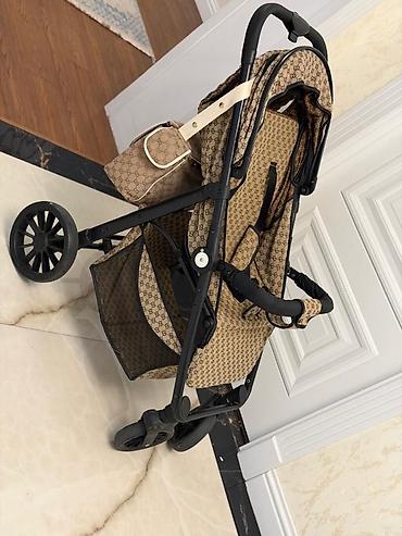 Uşaq arabası + avtomobil üçün beşik (2‑si 1‑də) dəsti 500 manata alinib az işlənib - Çərçivə: yüngül və möhkəm metal konstruksiya, qızılı/bronz rəngli. - Oturacaq/beşik: çıxarılan və şassiyə asan...
