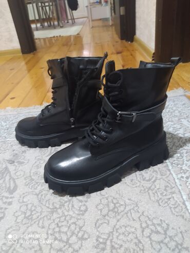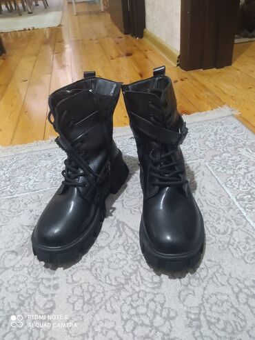 Qadın uzun temiz dəri çəkmə baha alınıb - Rəng: tünd qəhvəyi - Material: yumşaq dəridən, dekorativ iri tikişlər - Dizayn: dizə yaxın hündürlük, yan tərəfdə metal tokalı dekorativ kəmər - Daban: qa...