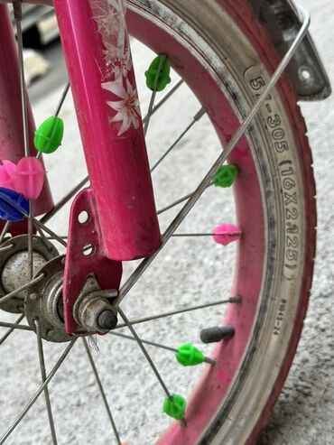 Uşaq velosipedi – çəhrayı rəngdə, 16 düym təkərlər (şin ölçüsü: 16 x