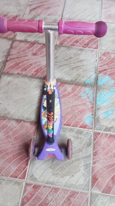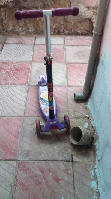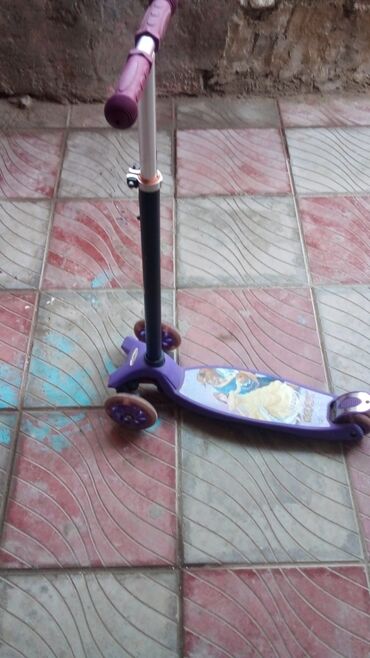 Uşaq skuteri – 3 təkərli, bənövşəyi rəngdə.