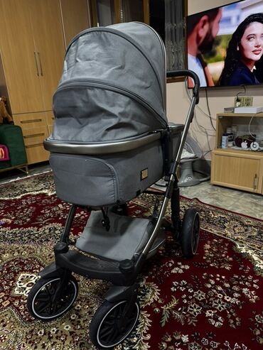 Uşaq arabası – boz rəng, klassik beşik tipli