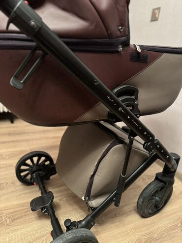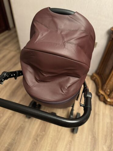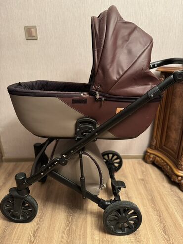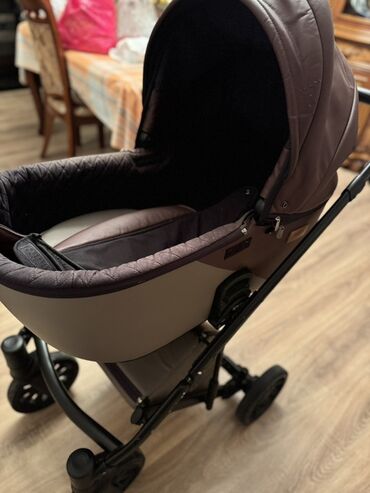 Uşaq arabası – bebekon tipli, yataq səbəti ilə - Rəng: tünd boz/krem-qızılı şassı - Dönər şassi: oturacaq/səbət valideynə və ya irəli baxacaq şəkildə çevrilə bilir - Geniş, dərin beşik tipli səbət...