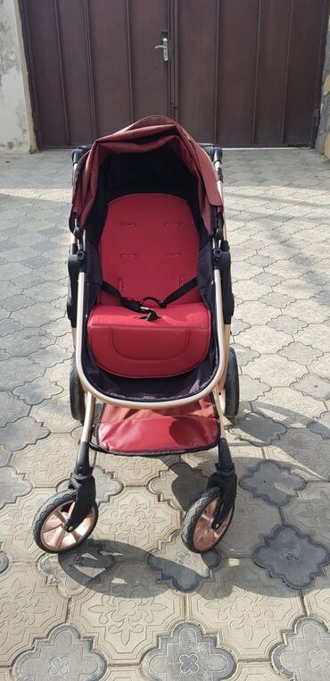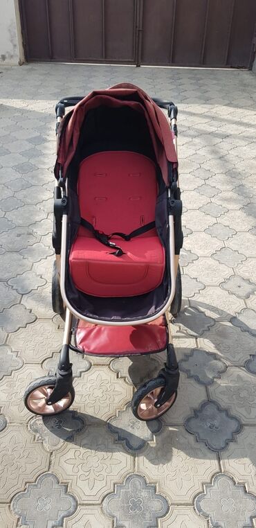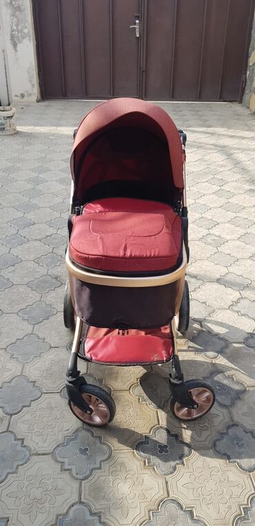 Tünd qırmızı rəngdə və qızılı rəngli çərçivəyə malik çoxfunksiyalı uşaq arabası. Bu araba körpənizin rahatlığı üçün dəyişdirilə bilən oturacaq və uzanan səyahət funksiyasına malikdir. Təkərlər hamar hərəkət və manevr qabiliyyəti üçün nəzərdə tutulmuşdur. Araba körpənin doğumundan etibarən istifadə üçün idealdır.Real alıcıya endirim olacaq