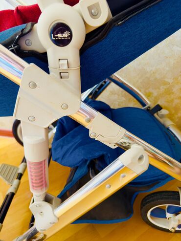 Salam Uşaq arabası(kalyaska) – mavi rəng, qızılı/alüminium çərçivə /. istəsəz əlinizdə götürə bilərsiniz beşiyi çəmi üç -dörd ay işlənib. - Möhkəm alüminium karkas: yüngül, lakin dayanıqlı konst...