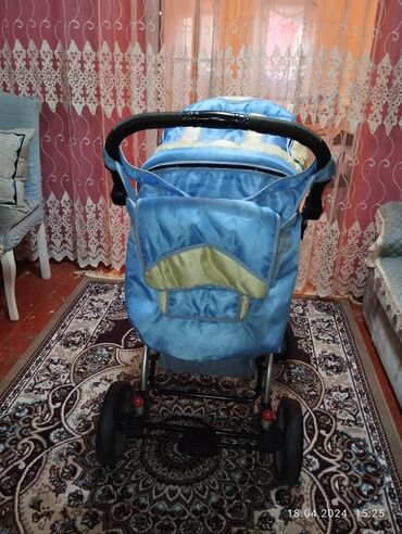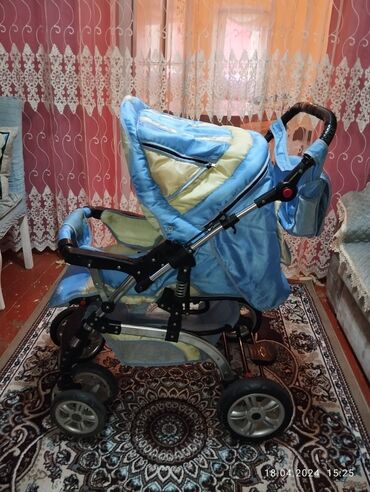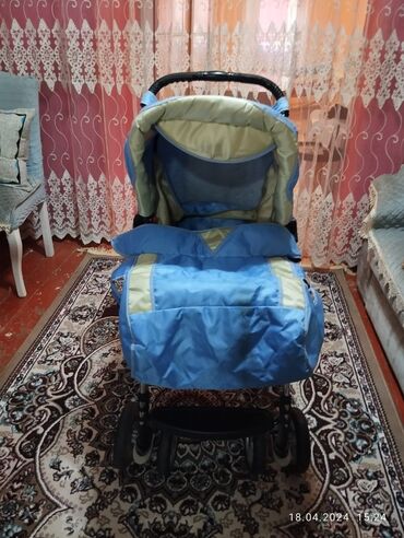Uşaq arabası – mavi/krem rənglərdə, çoxfunksiyalı. Xüsusiyyətlər: -