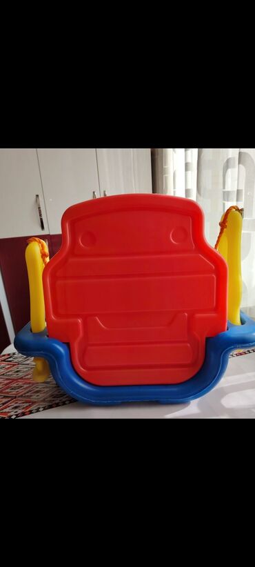 - 3 rəngli plastik konstruksiya: mavi oturacaq, qırmızı arxa dayaqlıq, sarı ön panel və sükan
