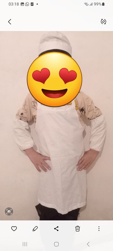 Uşaq aşpaz dəsti – ağ önlük və şapka - İki hissədən ibarət: klassik ağ aşpaz önlüyü və uyğun aşpaz papağı - Uşaqlar üçün ölçü; boyun hissəsi asqılı, önlük ön tərəfdən geniş örtür - Yumşaq, nəfəsal...