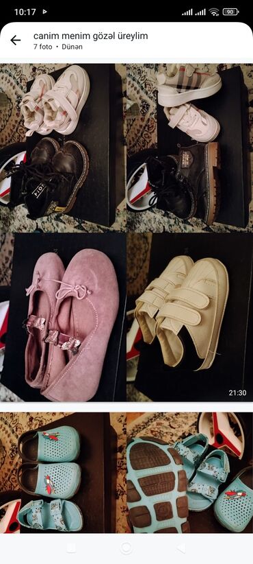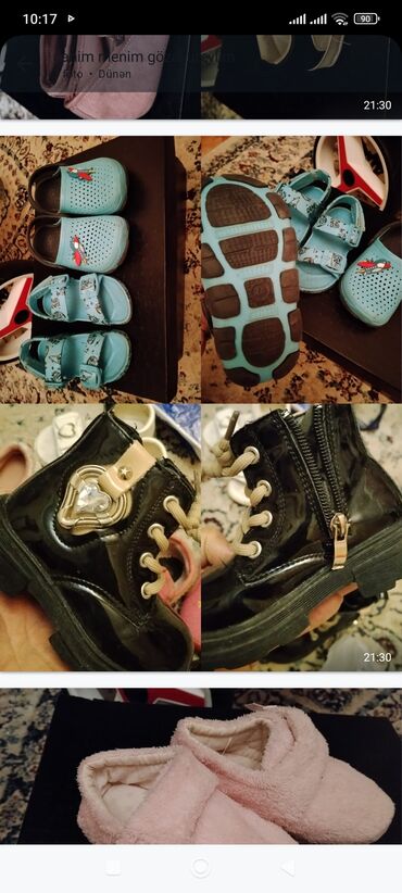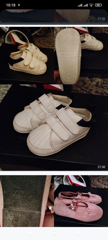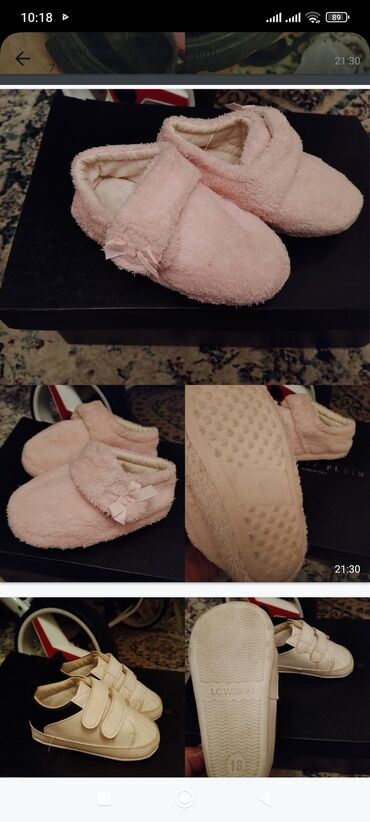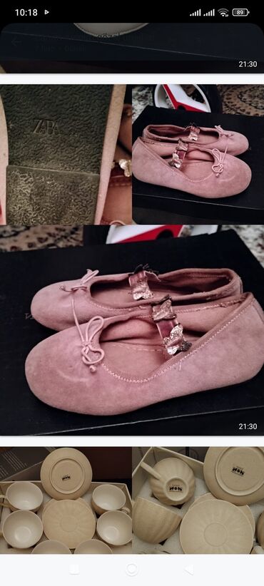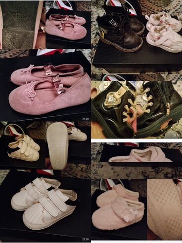 Uşaq ayaqqabıları və ev üçün tapş kimi dəst 22-24 ölçü Məhsullar: - Qız üçün baletka: ZARA yazılı altlıq, toz-çəhrayı rəng, yumşaq süet toxuma, üst hissədə parıltılı kəpənək bəzəyi və elastik len...