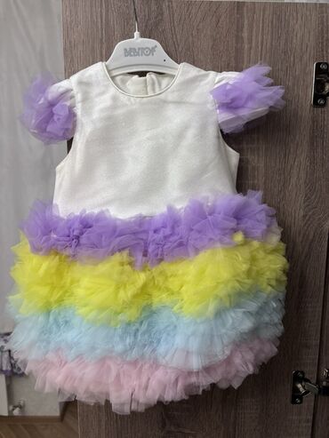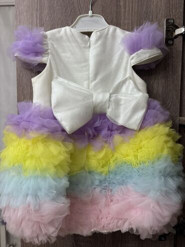 Uşaq üçün ziyafət/libas paltarı – Roseya brendi - Rəng: açıq pudra/çəhrayı - Model: çoxqatlı tül ətək, önü qısa-arxası uzun (hi-low) kəsim - Üst hissə: tül volan detallı - Bel xətti: incə daş/kris...