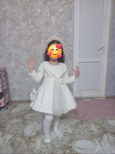 Ağ rəngli qız uşağı üçün ziyafət/əlbisə. Az geyilib. Ustanbuldan alınıb keyfiyyətli türk istehsalıdır - Model: uzun tül ətəkli, A-kəsim - Rəng: süd-ağ - Üst hissə: güpür və çiçək naxışlı aplikasiy...