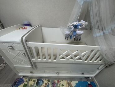 Yaxşı vəziyyətdədir yeni kimi uşaq heç yatmayıb içərisində matrası var əlavə döşək yorğan üzərində verilir .üzərinin tülüdə var