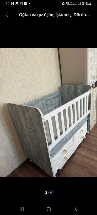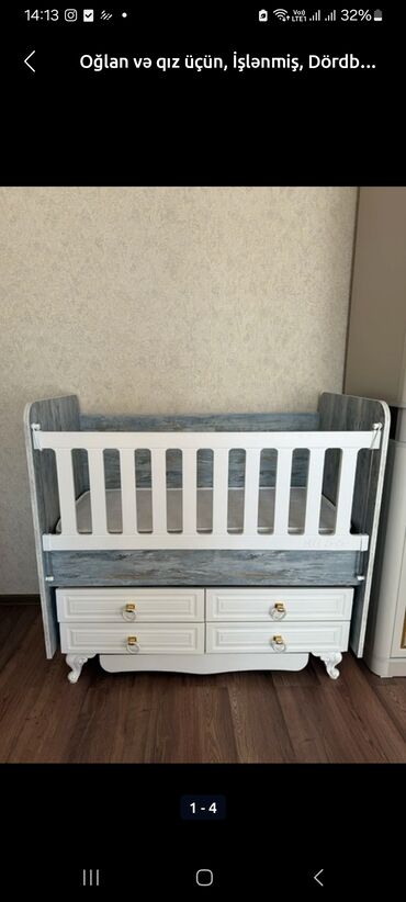 Oğlan və qız üçün, İşlənmiş, Dördbucaq, Beşik, Matras ilə, Yellənmə mexanizm ilə