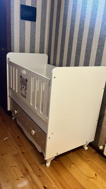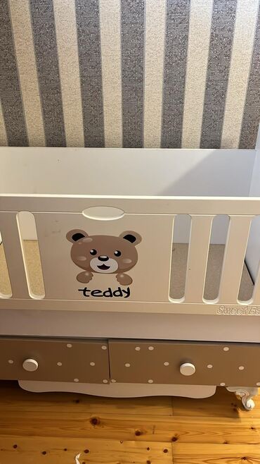 Uşağın otağına uyğun zərif və funksional beşik komplekti döşəklə birlikdə.