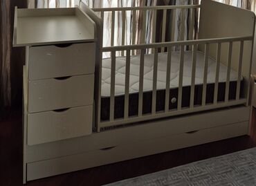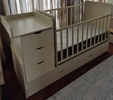 - Solda inteqrə olunmuş komod: 3 çekmece, üzərində uşaq altlığı/dəyişdirmə masası kimi istifadə oluna bilən geniş səth