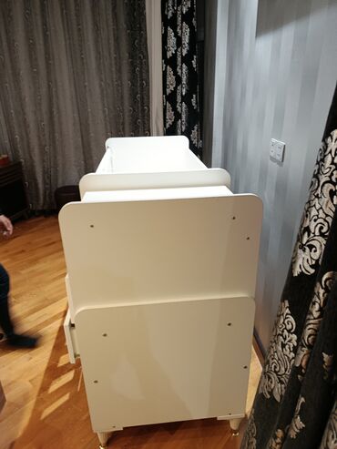 Uşaq beşiyi – taxta, klassik dizayn - Material: möhkəm taxta, açıq krem rəng - Ölçü: standart uşaq beşiyi ölçüləri (körpə üçün rahat yuxu sahəsi) - Konstruksiya: dörd tərəfi barmaqlı, təhlükəsiz v...