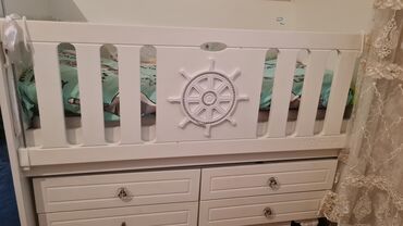 Sekine…..Uşaq beşiyi – ağ rəngdə, taxta konstruksiya. Sallanma mexanizmi və yan tərəfdə enib-qalxan qoruyucu barmaqlıq mövcuddur. Şəkillərdə komplekt olaraq göstərilənlər daxildir: yumşaq yastıq-ba...