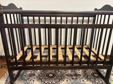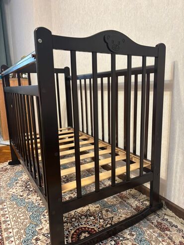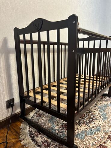 Uşaq beşiyi – tünd qəhvəyi rəng, taxta konstruksiya.