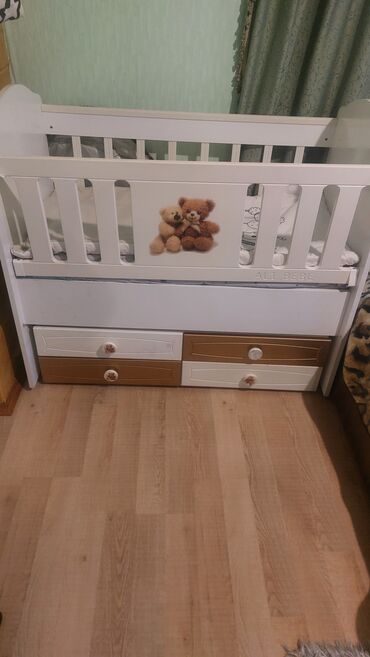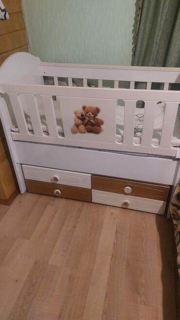 Ev və uşaq otağına uyğun, neytral rəng palitrası ilə həm qız, həm oğlan körpələr üçün yığcam və funksional beşik.