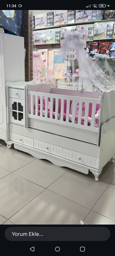 - Beşiyin altında geniş saxlanma üçün çekmecələr