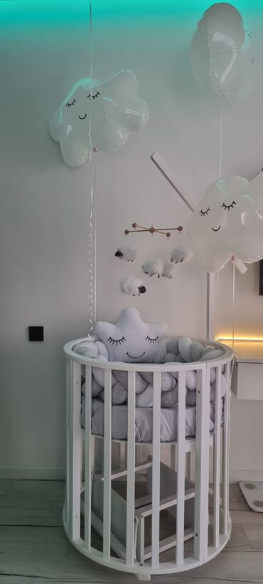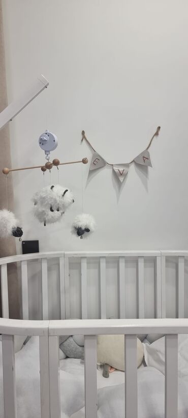 Uşaq beşiyi + dəst aksesuarlar üstünde kanfert hədiyyə - Material: ağac (tünd qəhvəyi korpus, ağ relslər) - Tip: yelləncək funksiyalı beşik, ön tərəf sürüşən-gizlənən relslə. Möhkəm lamelli yanlı...