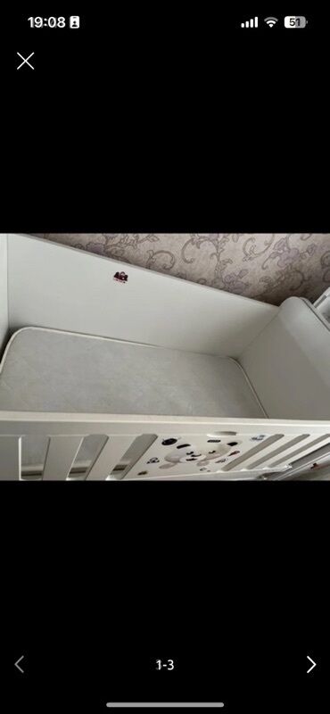 Şəkillərdə görüldüyü kimi tam dəst: beşik, döşək, alt çekmecələr və yan komod.