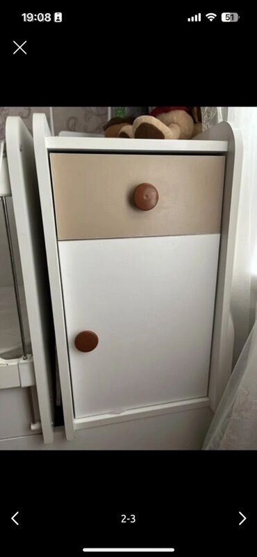 Uşaq beşiyi və komod dəsti - Rəng: ağ və bej tonları, ön paneldə