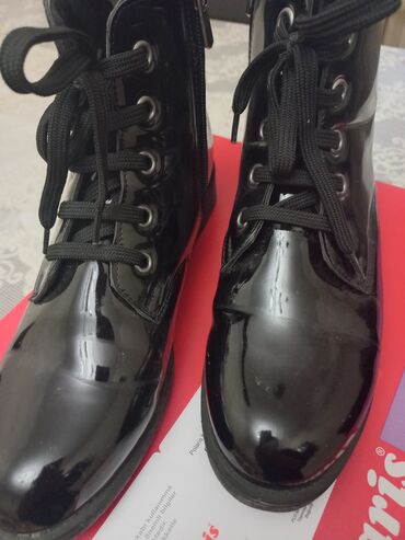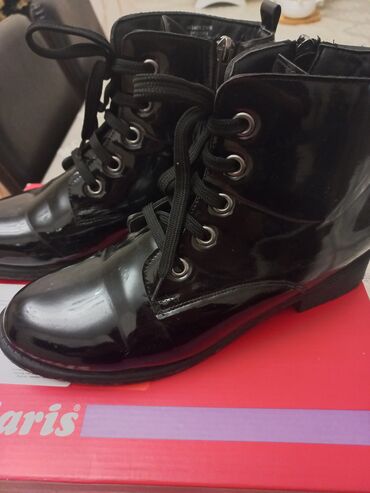 Uşaq üçün laklı botlar 33 razmer - Rəng: parlaq qara üst, boz qalın altlıq və boz bağlar - Material: lak effektili üst material, yan tərəfdə praktik fermuar; bağcıqlı qapanma - Altlıq: qalın, rely...