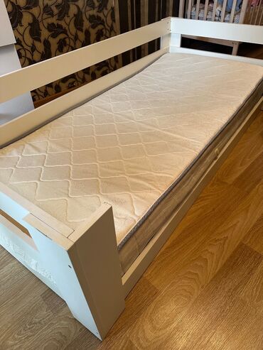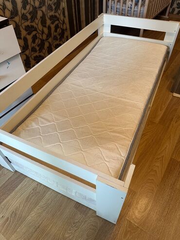 Matras iləUşaq çarpayı, yaxşı vəziyyətdə. Qarşısında uşaqın yixilmaması uchun əlavə taxtaları var. 250 manata alınıb