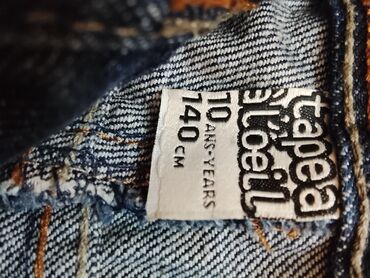 Uşaq cins şalvarı - Rəng: tünd göy (denim), açıq solğun effektli bölgələr - Bəzəklər: ön hissədə müxtəlif naxışlı/aplikasiyalı detallar (çiçək və ulduz motivləri), ağ düymə və xallı parçadan dekor...