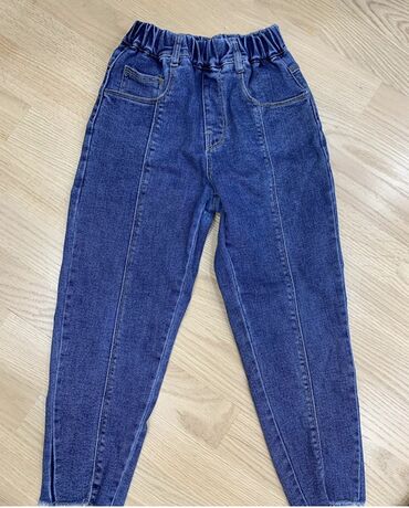 Uşaq cins şalvarı - Rəng: açıq mavi (yüngül solma effekti ilə) - Kəsim: rahat/konik kəsim, balaqlar daralan - Bel: rezinli elastik bel + ön hissədə düymə detallı - Material: klassik denim (pambıq ...